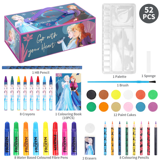 Frozen 52pc Kids Colouring Art Stationery Set with Watercolour Felt Tip Pens Crayons and Pencils Travel Set for Children