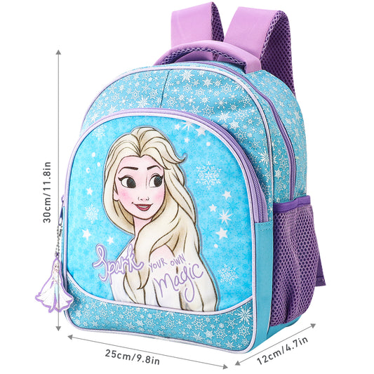 Frozen Kids Childrens Premium Backpack School Rucksack Travel Bag with side mesh pockets and front zipped pocket, Multicolour