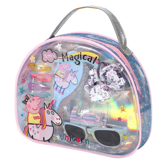 Peppa Pig 12pc Girls Kids Sunglasses Hair Accessories Comb Clips Bands Beauty Set with Carry Case
