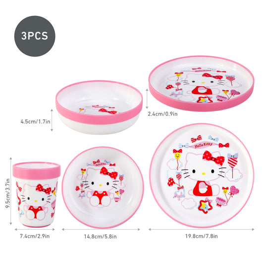 Hello Kitty 3pcs Bicolor Premium Kids Dinner Tableware Set Plate, Bowl & Tumbler, BPA Free