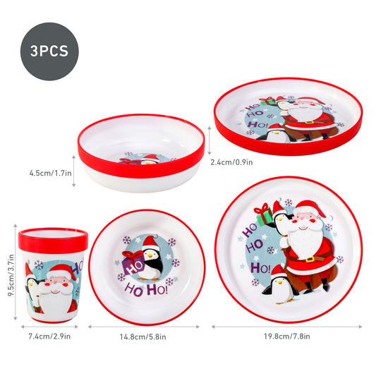 Christmas Xmas 3pcs Bicolor Premium Kids Dinner Tableware Set Plate, Bowl & Tumbler, BPA Free