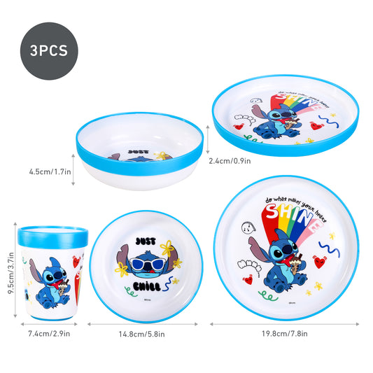 Stitch Island 3pcs Bicolor Premium Kids Dinner Tableware Set Plate, Bowl & Tumbler, BPA Free