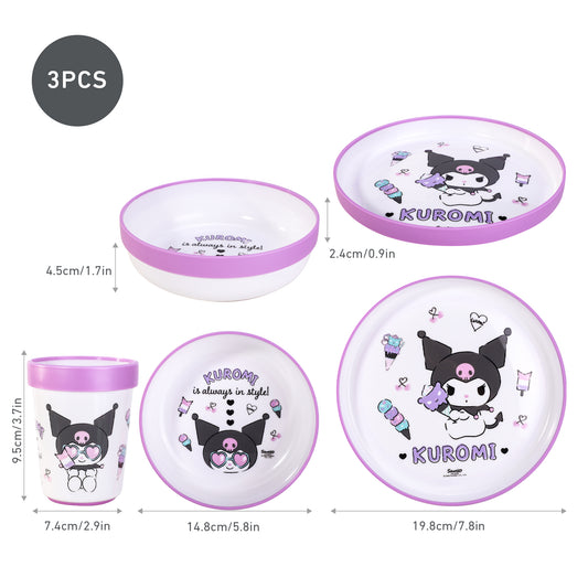 Kuromi 3pcs Bicolor Premium Kids Dinner Tableware Set Plate, Bowl & Tumbler, BPA Free