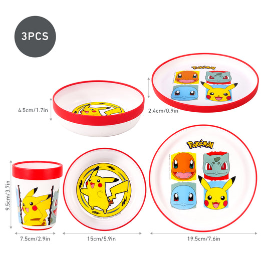 Pokemon 3pcs Bicolor Premium Kids Dinner Tableware Set Plate, Bowl & Tumbler, BPA Free