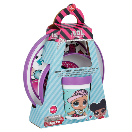 LOL 3pcs Bicolor Premium Kids Dinner Tableware Set Plate, Bowl & Tumbler, BPA Free