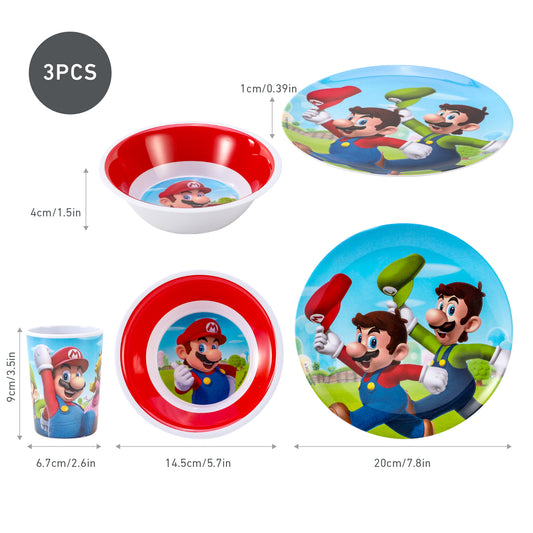 Super Mario 3 Pcs Melamine Set W/O Rim (Plate, Bowl & Tumbler 260 Ml), BPA free