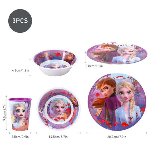 Disney Frozen Kids Childrens BPA Free 3pcs Breakfast Lunch Dinner Set Plate, Bowl & Cup