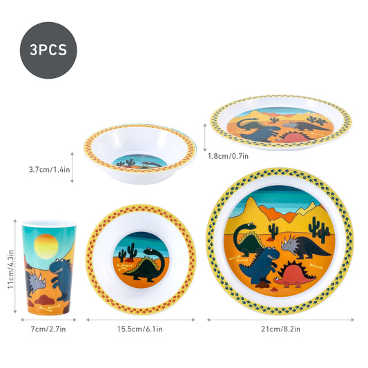 Dinosaur 3Pcs Coloured Dining Set - Plate, Bowl and Tumbler Dinnerware Set for Children, BPA Free