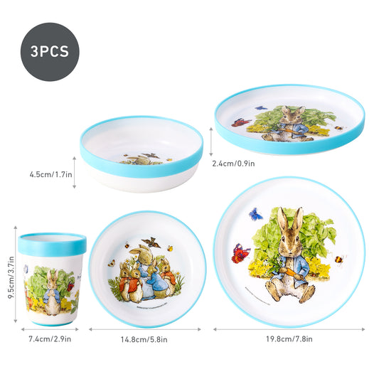Peter Rabbit 3pcs Bicolor Premium Kids Dinner Tableware Set Plate, Bowl & Tumbler, BPA Free