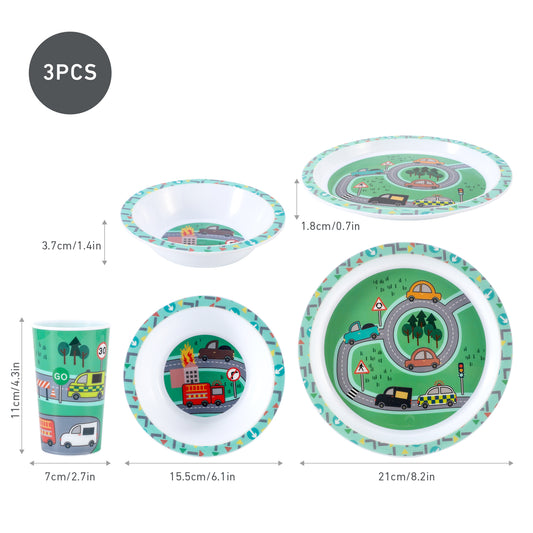 Vehicle 3Pcs Coloured Dining Set - Plate, Bowl and Tumbler Dinnerware Set for Children, BPA Free