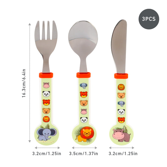 Animal Children's Kids 3pcs Stainless Steel Cutlery Utensil Set, Knife Fork Spoon