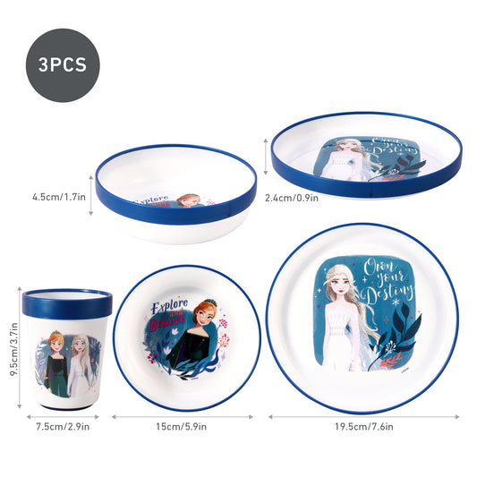 Disney Frozen 3pcs Kids Childrens Micro Dinner Lunch Tableware Set Plate, Bowl & Cup, BPA Free