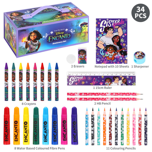 Encanto 34pc Kids Colouring Art Stationery Set with Watercolour Felt Tip Pens Crayons and Pencils Travel Set for Children