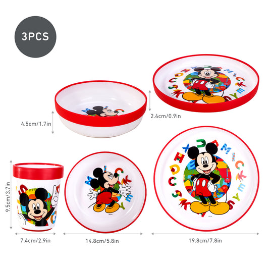 Mickey Mouse 3pcs Bicolor Premium Kids Dinner Tableware Set Plate, Bowl & Tumbler, BPA Free