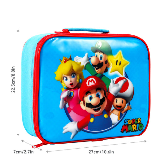 Super Mario Rectangular Insulated Lunch Box Bag for Boys and Girls, Perfect Size for Packing Hot or Cold Snacks for School and Travel, BPA Free