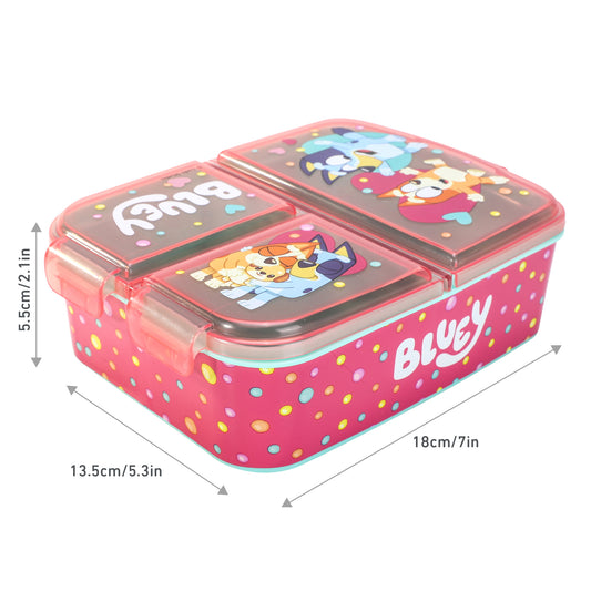 Bluey Kids Childrens Multi Compartment Rectangular School Travel Lunch Food Box Sandwich Bento Container, BPA Free