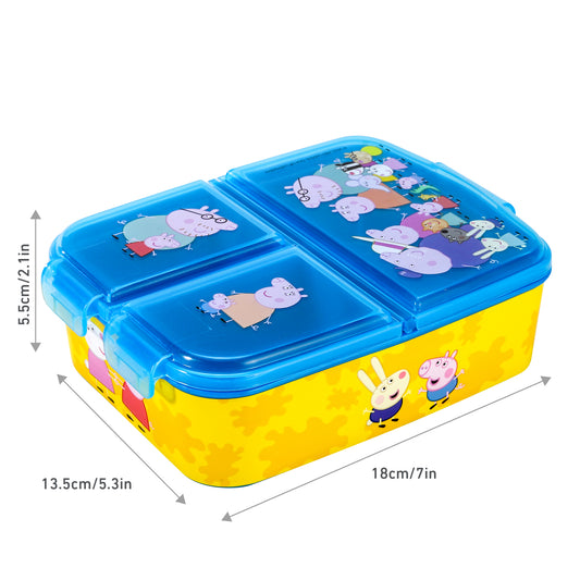 Peppa Pig Kids Childrens Multi Compartment Rectangular School Travel Lunch Food Box Sandwich Bento Container, BPA Free