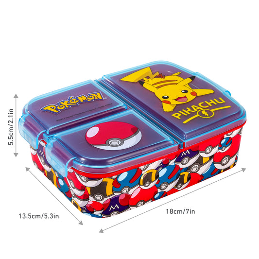 PoKéMoN Kids Childrens Multi Compartment Rectangular School Travel Lunch Food Box Sandwich Bento Container, BPA Free