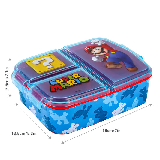Super Mario Kids Childrens Multi Compartment Rectangular School Travel Lunch Food Box Sandwich Bento Container, BPA Free