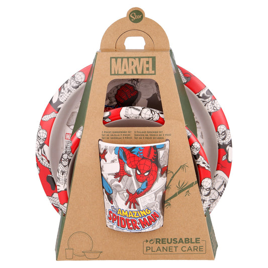 Spiderman 3Pcs Wooden Kids - Plate, Bowl and Tumbler Lunch Dinner Set