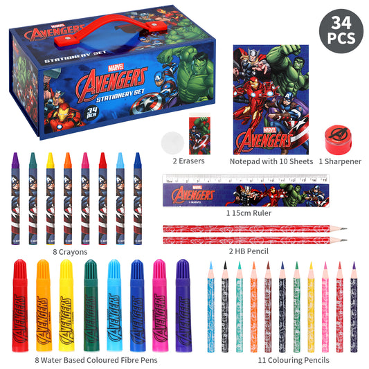 Avengers 34pc Kids Colouring Art Stationery Set with Watercolour Felt Tip Pens Crayons and Pencils Travel Set for Children