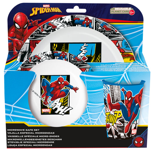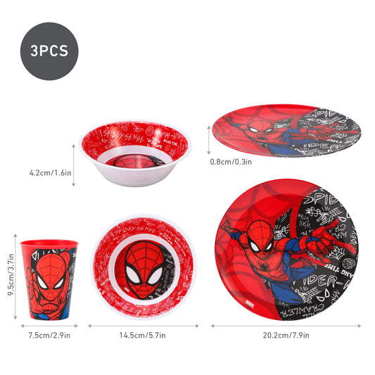 Spiderman 3pcs Kids Childrens Micro Dinner Lunch Tableware Set Plate, Bowl & Cup, BPA Free