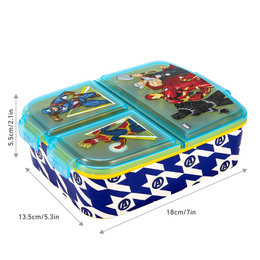 Avengers Kids Childrens Multi Compartment Rectangular School Travel Lunch Food Box Sandwich Bento Container, BPA Free