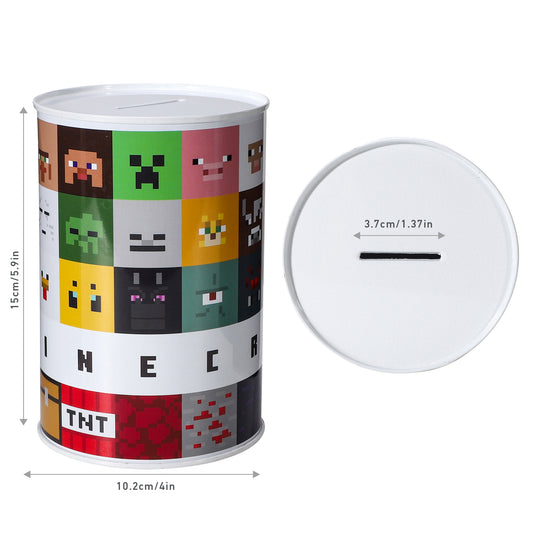 Minecraft Kids Money Piggy Bank Coin Saving Cash Tin Metal Box Boys Girls Multicolour