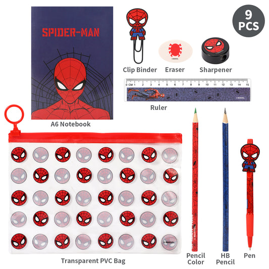 Spiderman 9pcs Transparent Filled Pencil Case Stationery Set Waterproof Boys Girls Kids Children School Travel Exam
