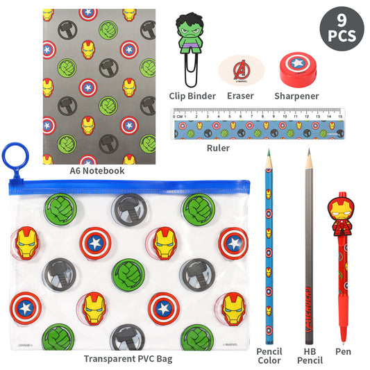 Avengers 9pcs Transparent Filled Pencil Case Stationery Set Waterproof Boys Girls Kids Children School Travel Exam