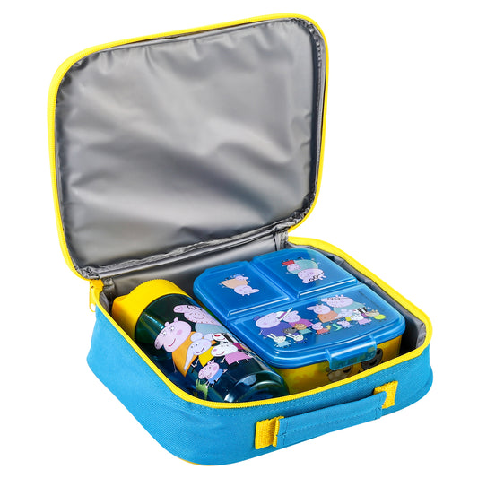Peppa Pig Kids Childrens Lunch Box Set – Insulated Lunch Bag, Multicompartment Lunch Box & 540ml Water Bottle - School Travel Lunch Food Set, BPA Free