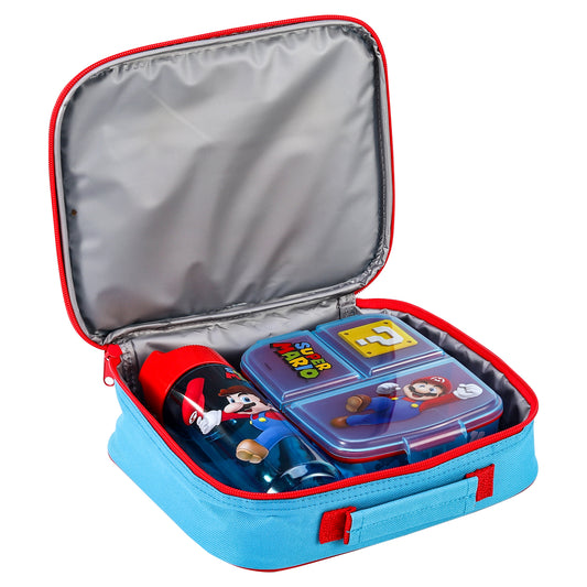 Super Mario Kids Childrens Lunch Box Set – Insulated Lunch Bag, Multicompartment Lunch Box & 540ml Water Bottle - School Travel Lunch Food Set, BPA Free