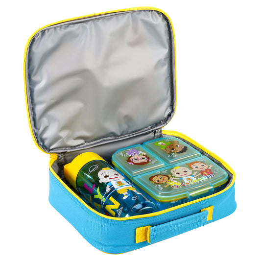 Cocomelon Kids Childrens Lunch Box Set – Insulated Lunch Bag, Multicompartment Lunch Box & 540ml Water Bottle - School Travel Lunch Food Set, BPA Free