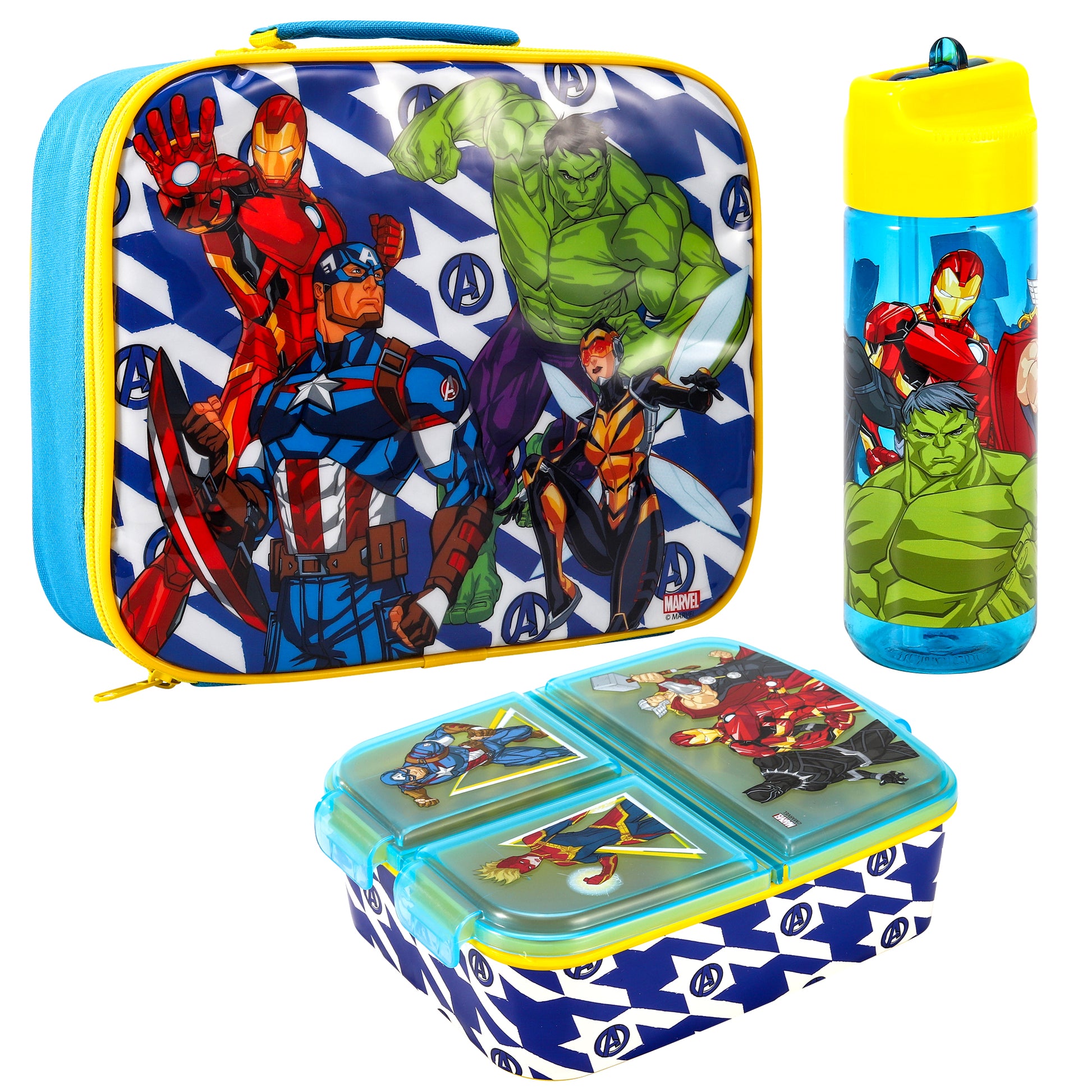 Marvel Avengers Kids Childrens Lunch Box Set – Insulated Lunch Bag, Multicompartment Lunch Box & 540ml Water Bottle - School Travel Lunch Food Set, BPA Free