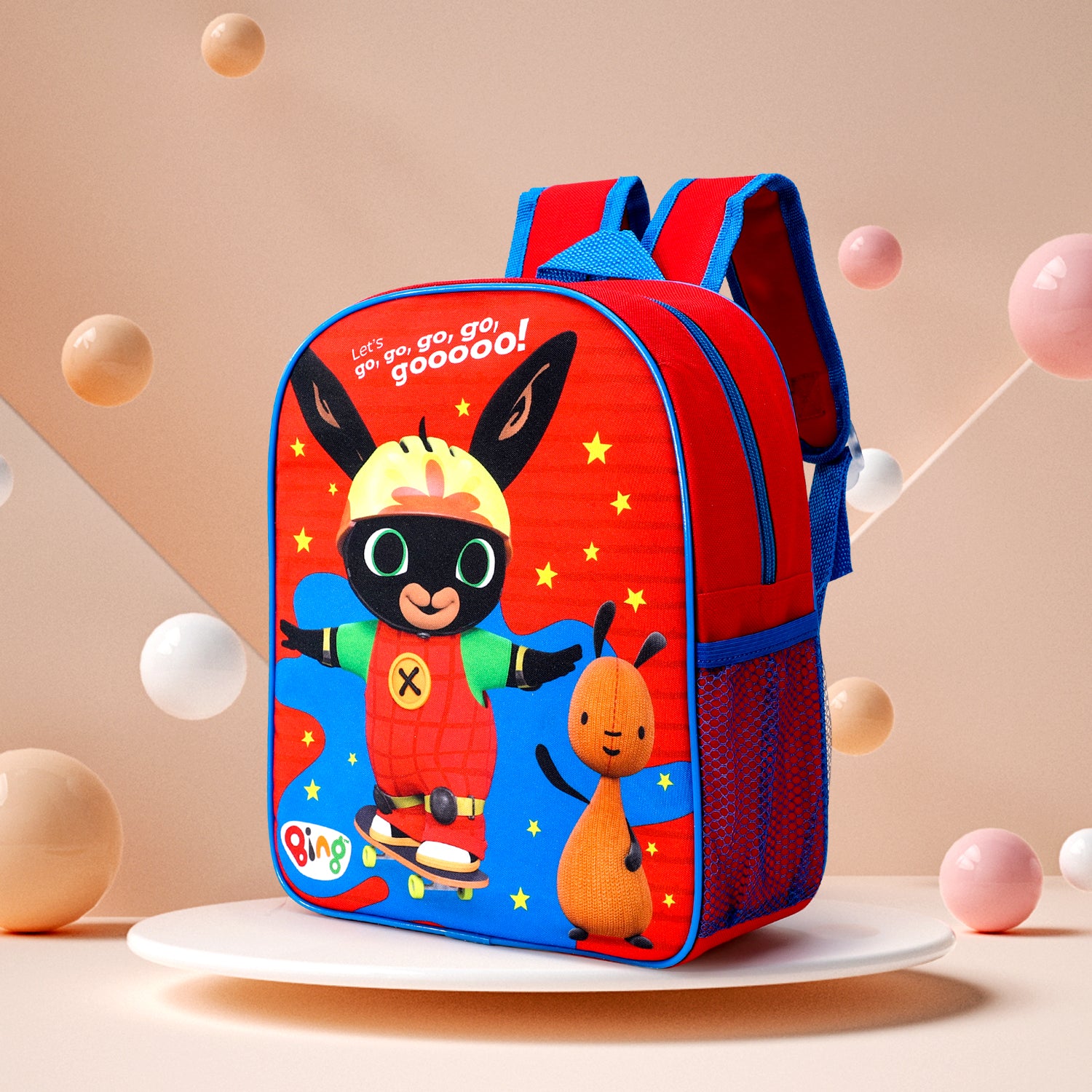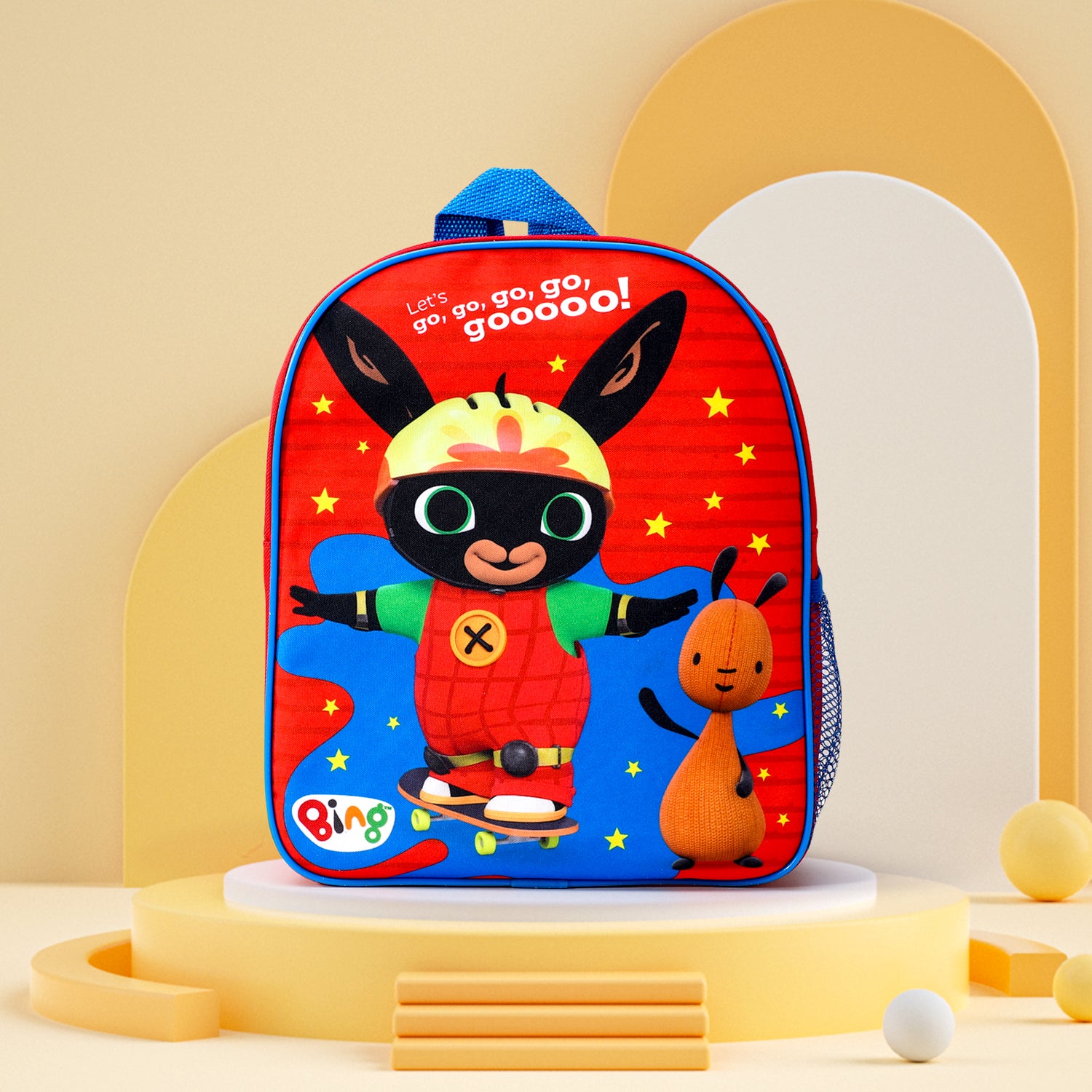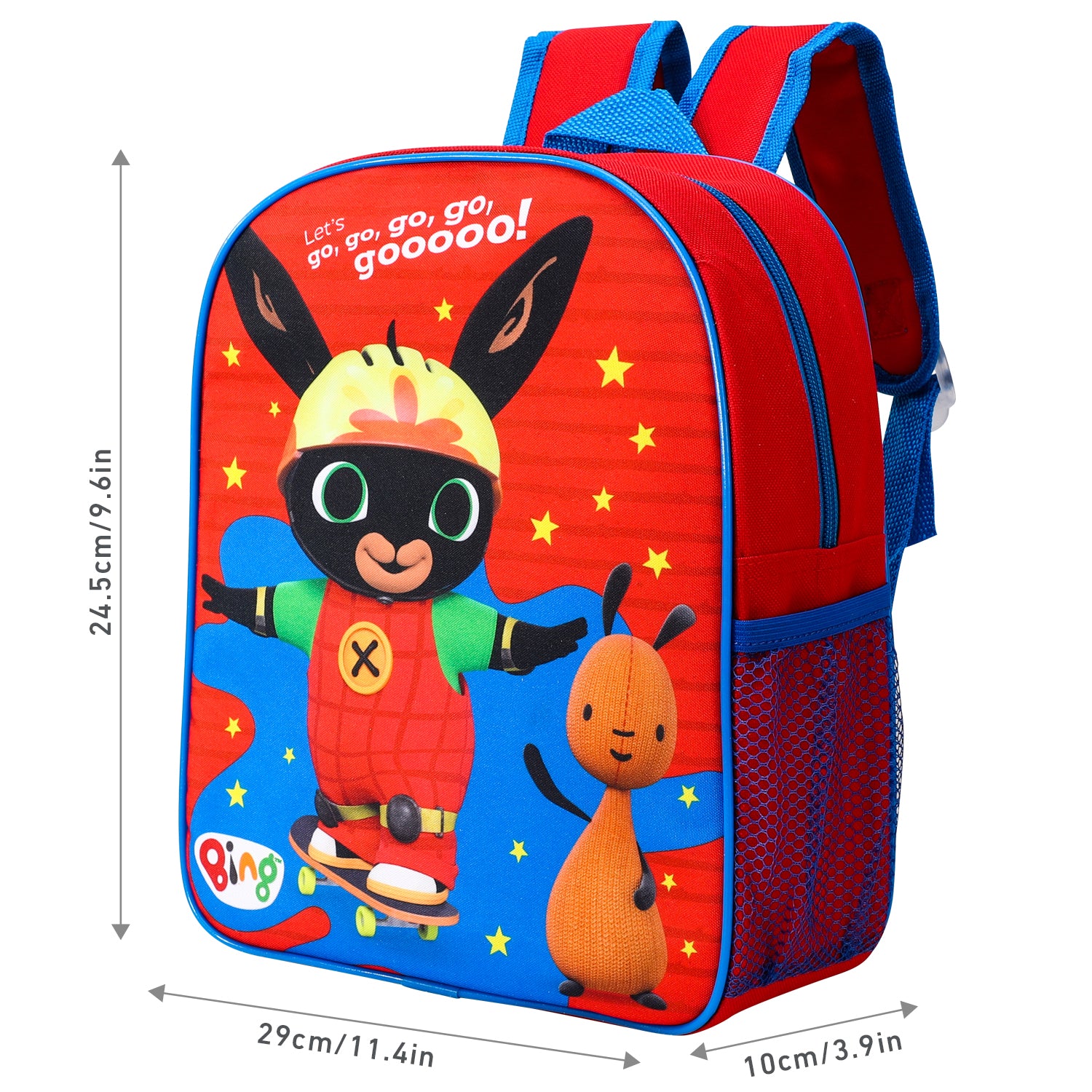 - FEATURES: This Bing Backpack has a large zip compartment, easy adjustable straps, grab handle at the top and one side mesh pocket for the kids water bottle.