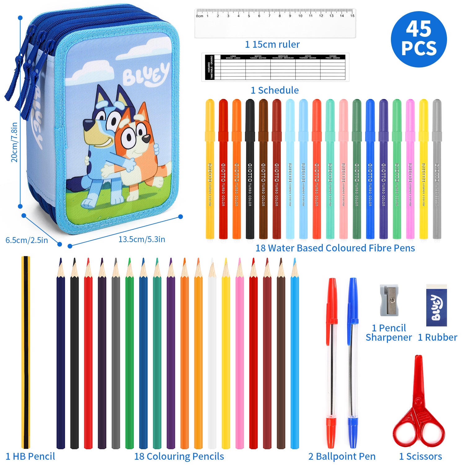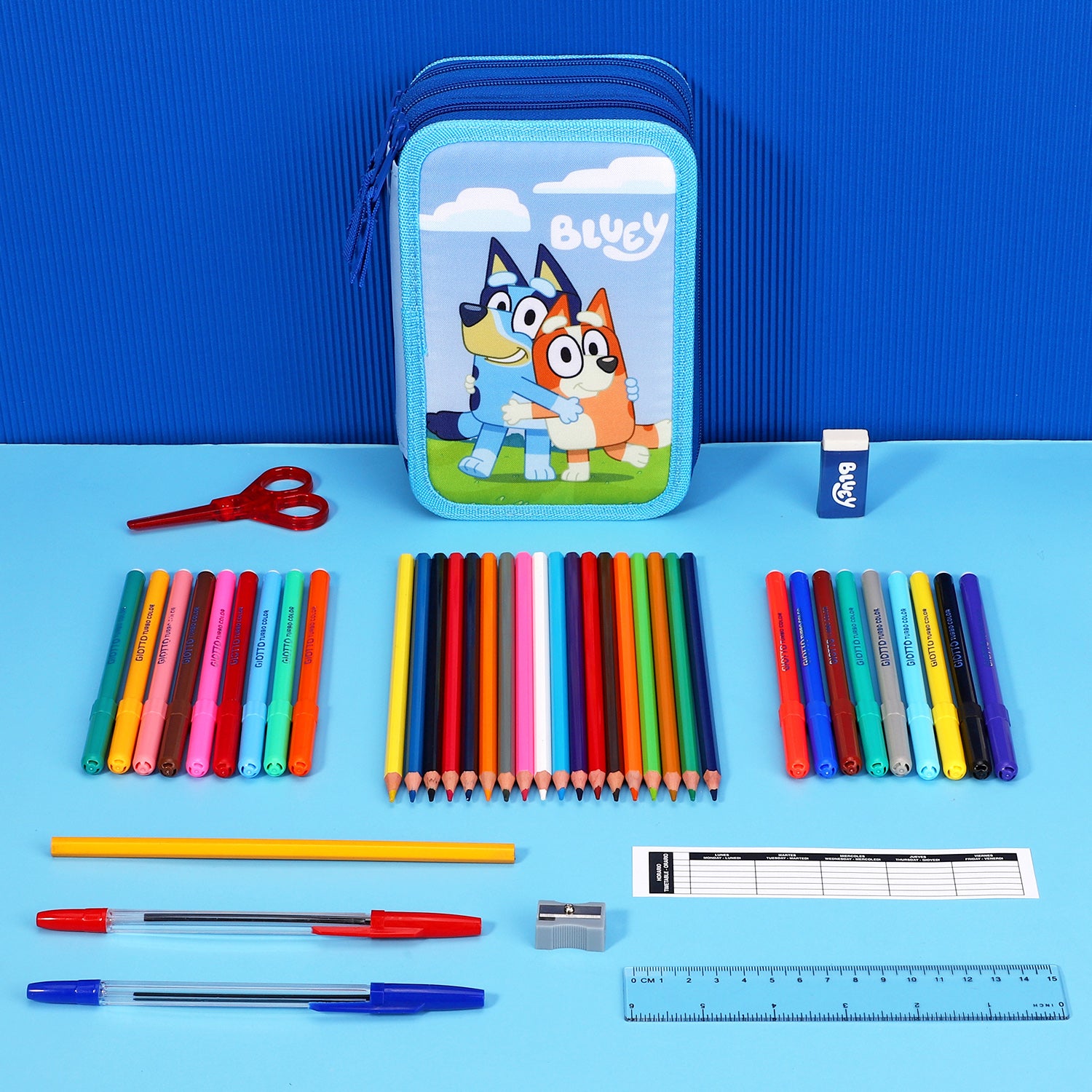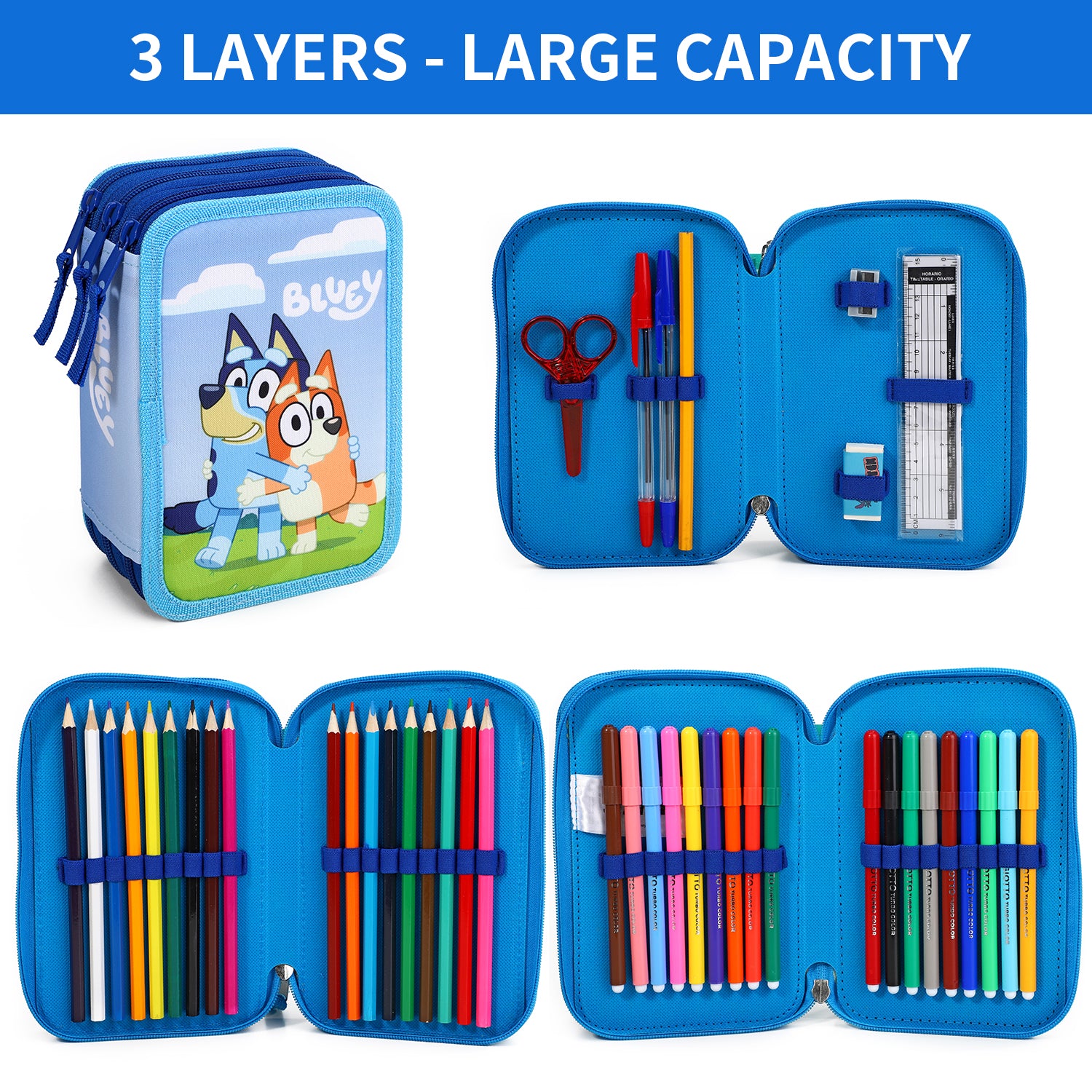 Bluey 3 Tier Large Pencil Case Multi Compartment School Supplies Stationery Colouring Pens Pencils Sets