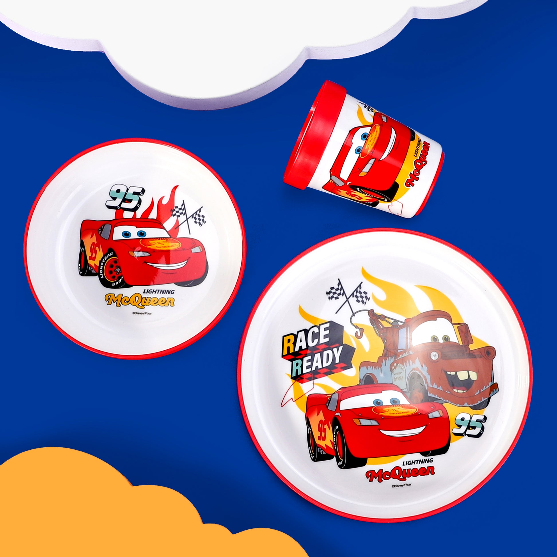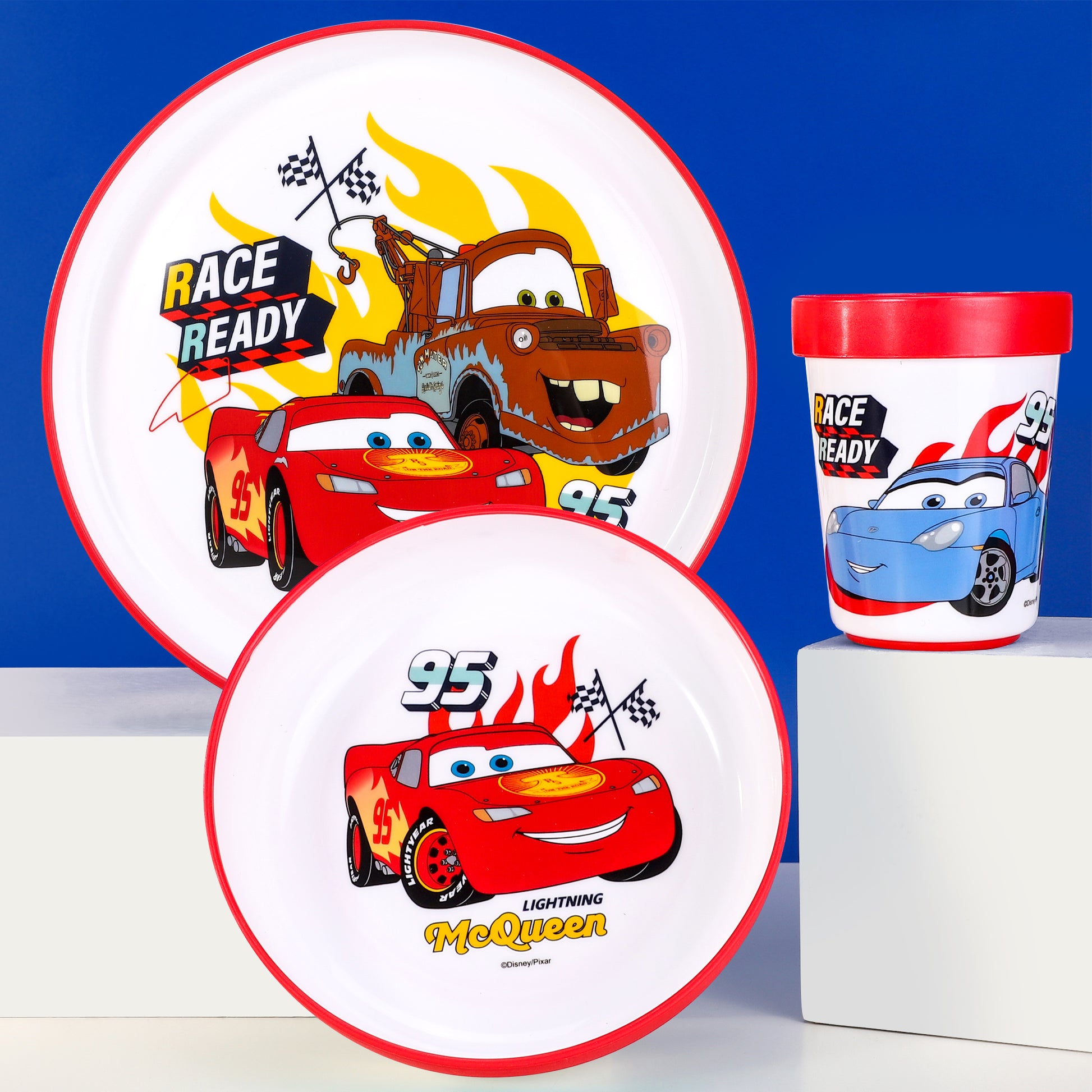 Cars 3pcs Bicolor Premium Kids Dinner Tableware Set Plate, Bowl & Tumbler, BPA Free