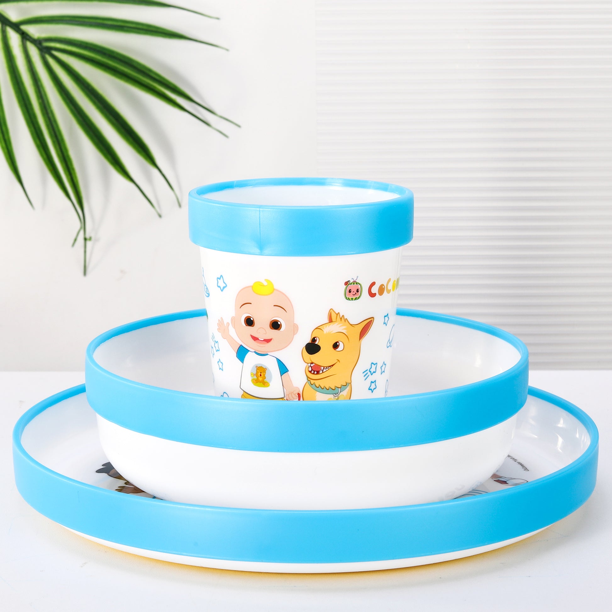 Cocomelon 3pcs Bicolor Premium Kids Dinner Tableware Set Plate, Bowl & Tumbler, BPA Free