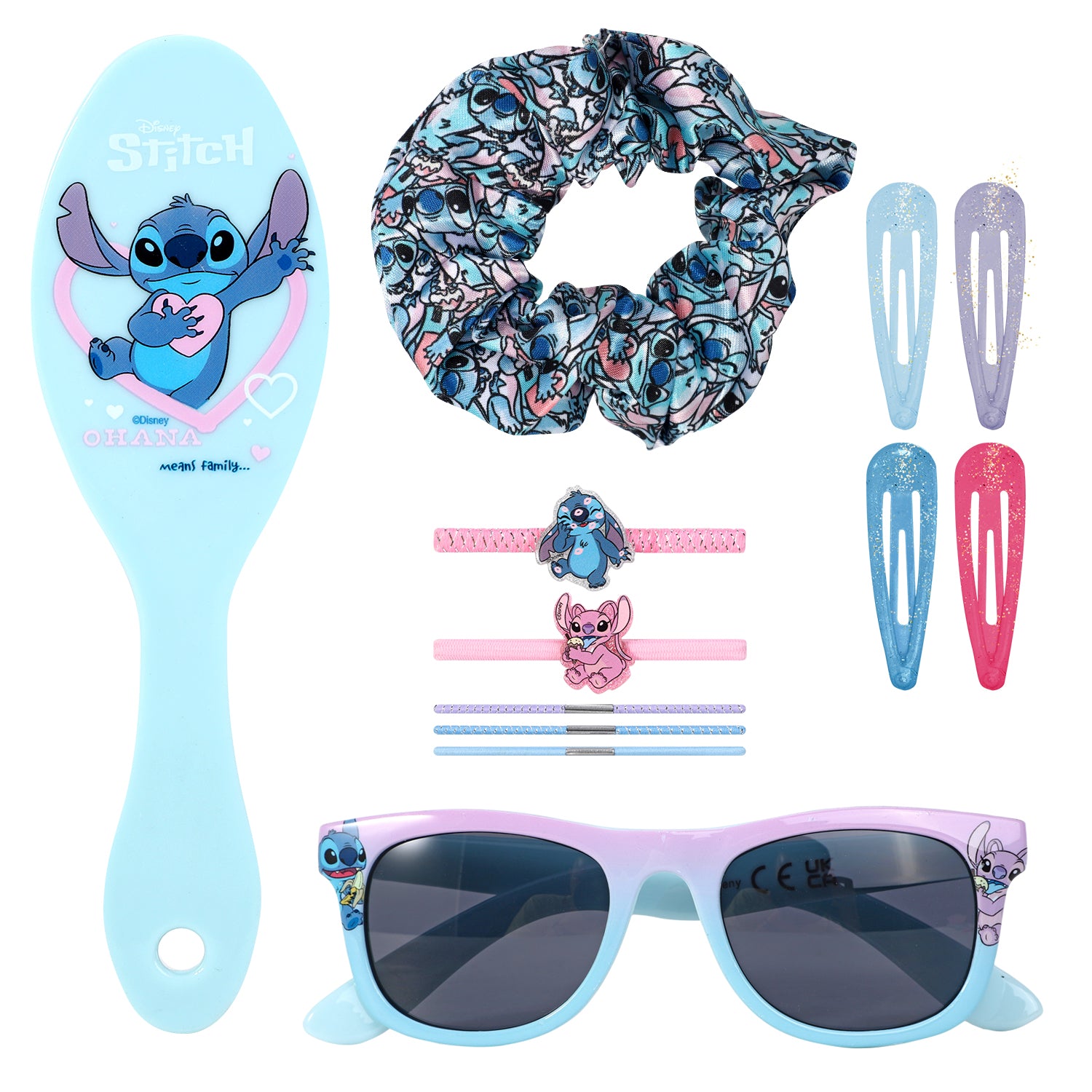 Disney Stitch 12pc Girls Kids Sunglasses Hair Accessories Comb Clips Bands Beauty Set with Carry Case