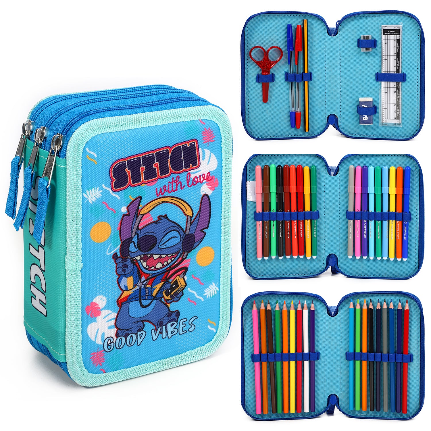 Disney Stitch 3 Tier Large Pencil Case School Supplies Pens Pencils Sets