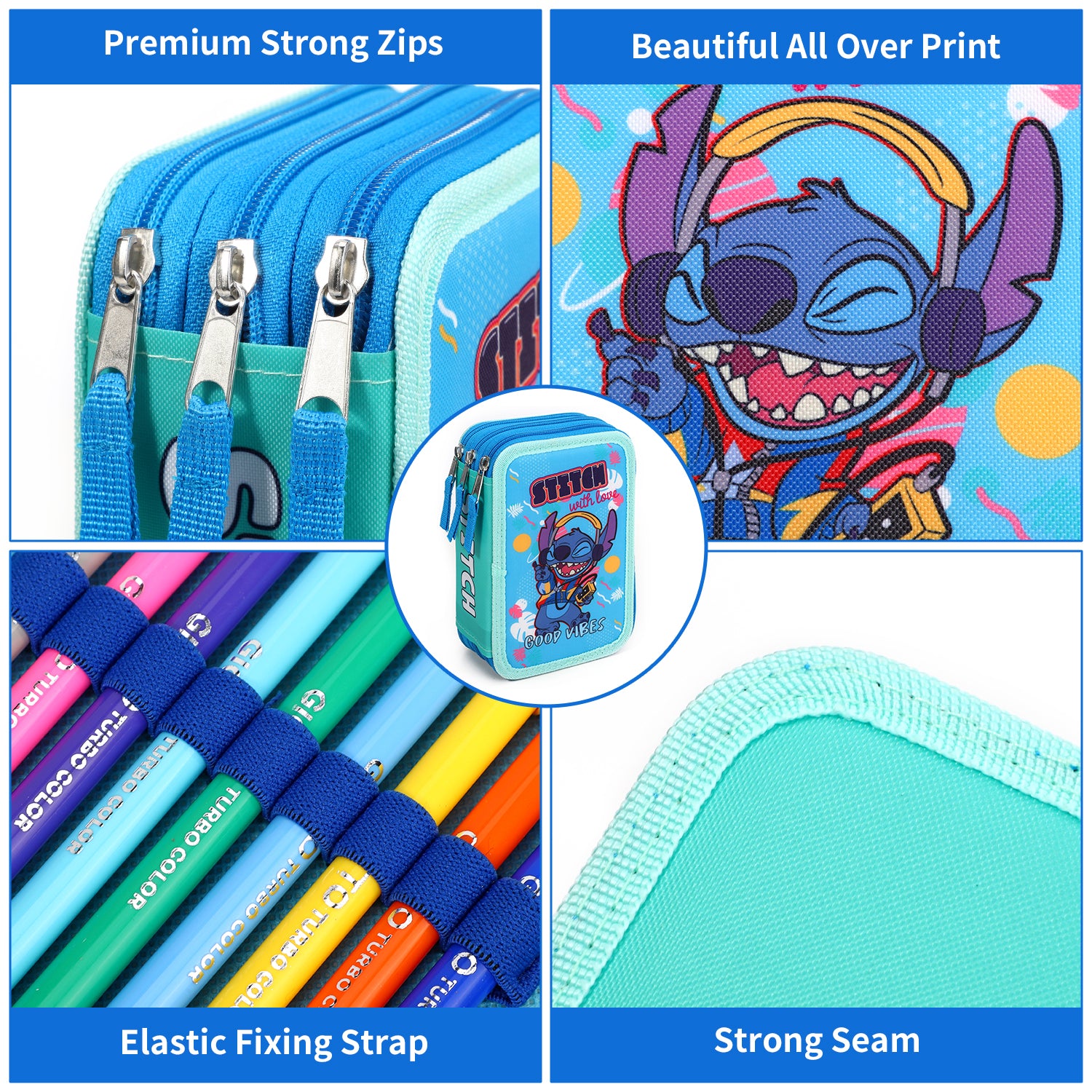 Disney Stitch 3 Tier Large Pencil Case Multi Compartment School Supplies Stationery Colouring Pens Pencils Sets