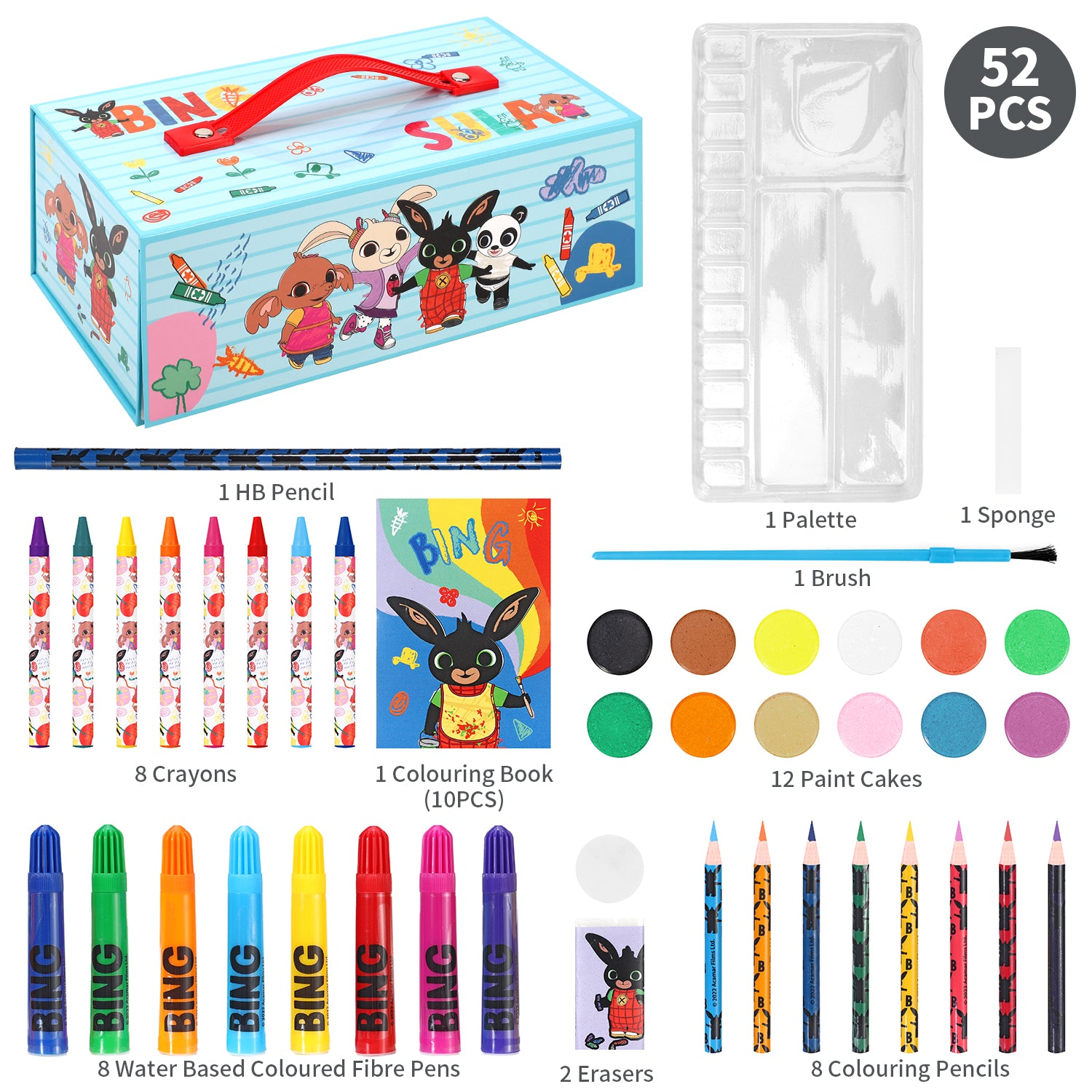 Bing Kids 52pc Colouring Art Stationery Set with Watercolour Felt Tip Pens Crayons and Pencils Travel Set for Children
