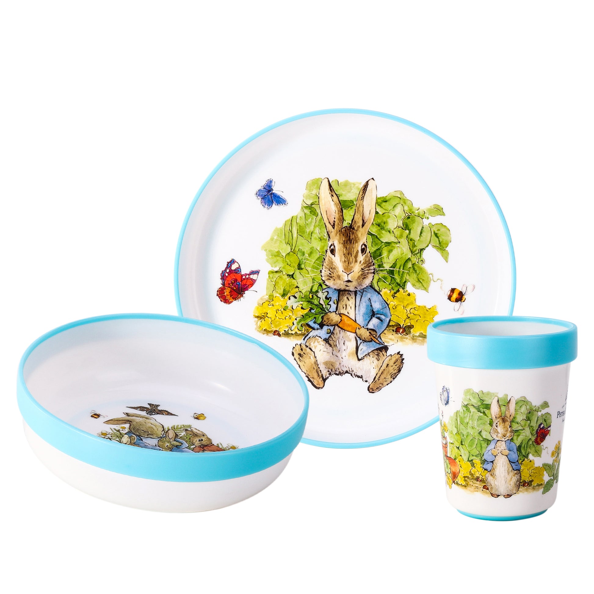 Peter Rabbit 3pcs Bicolor Premium Kids Dinner Tableware Set Plate, Bowl & Tumbler, BPA Free