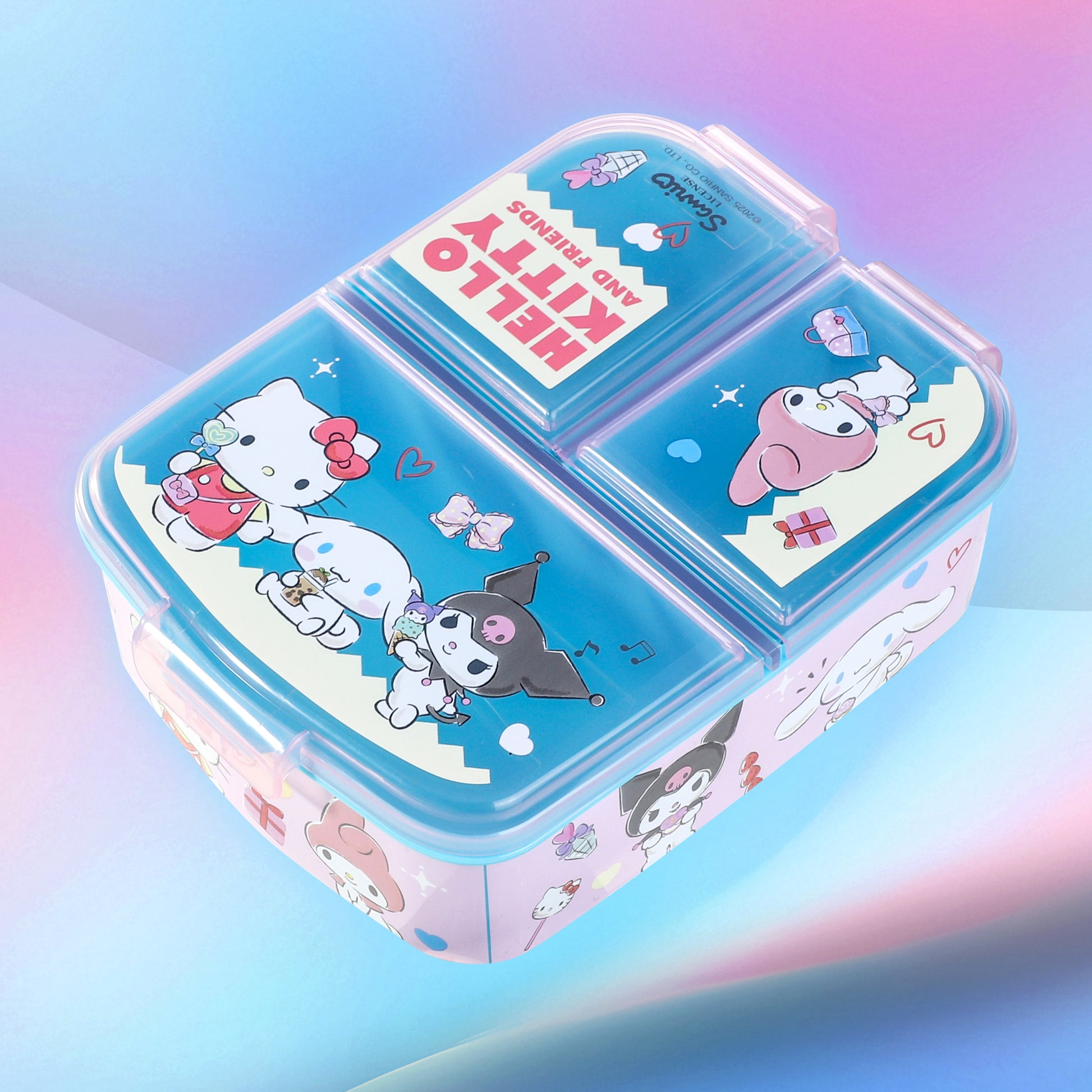 Hello Kitty & Friends Kids Childrens Multi Compartment Rectangular School Travel Lunch Food Box Sandwich Bento Container, BPA Free
