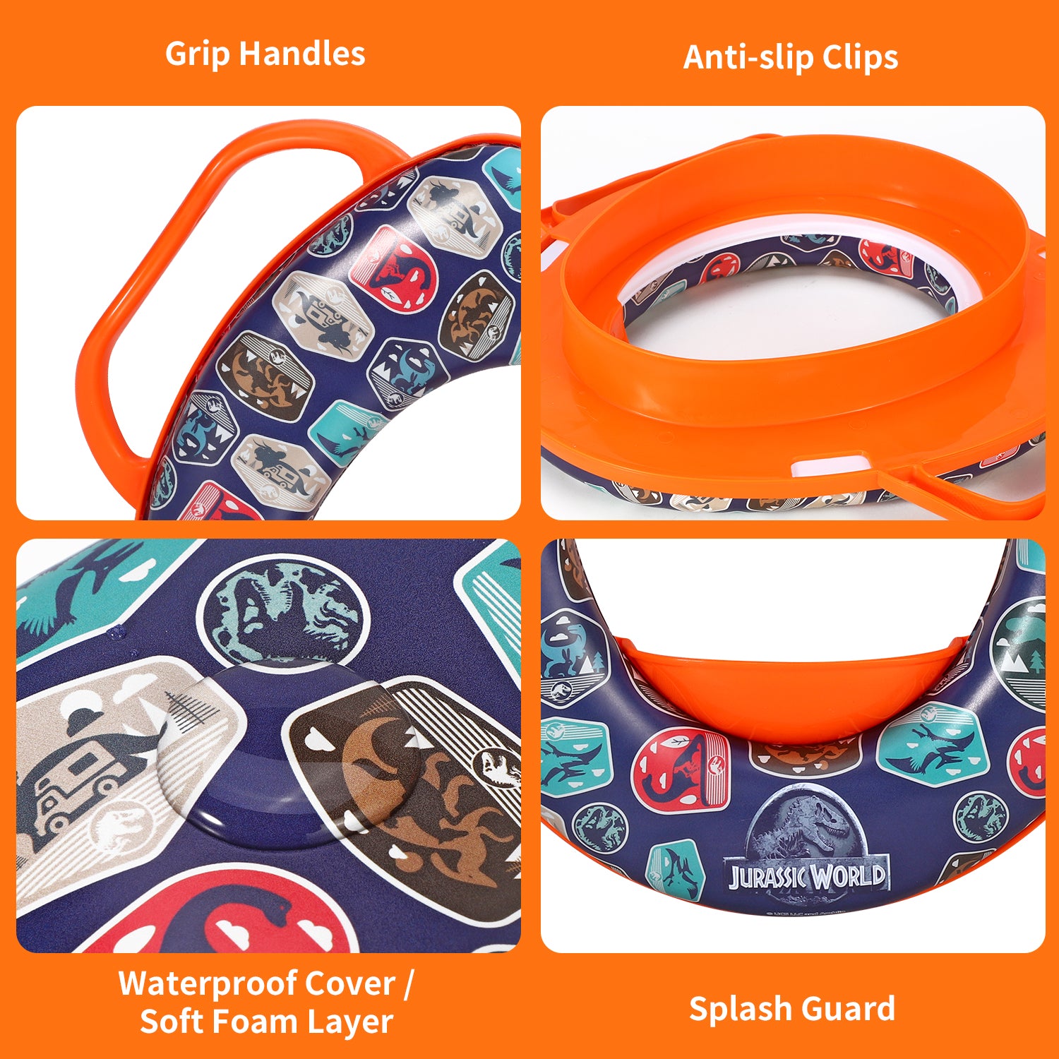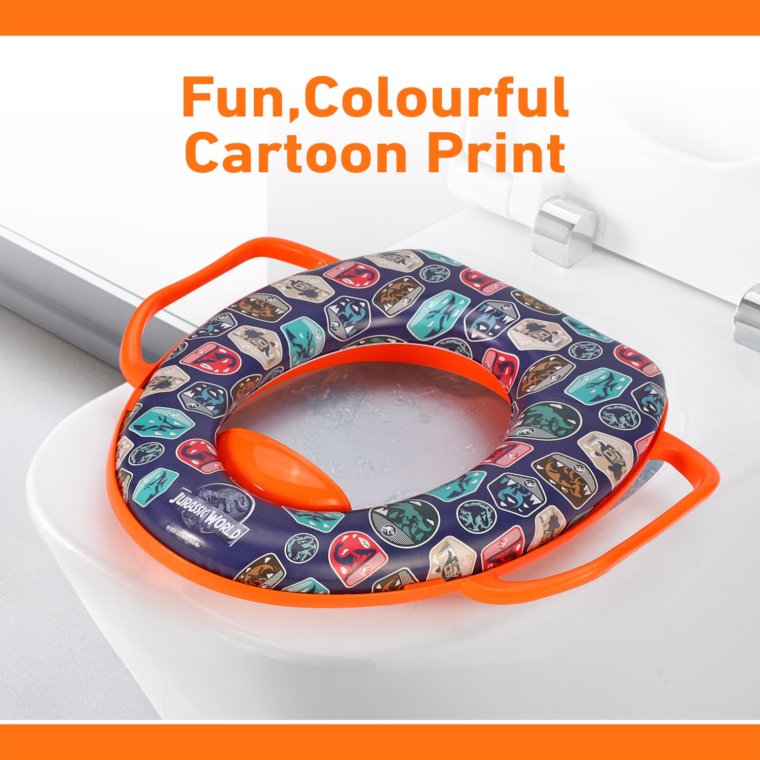 Jurassic World Soft Padded Potty Toilet Training Seat with Handles for Toddlers Kids Children, Portable for Travel & Easy to Clean