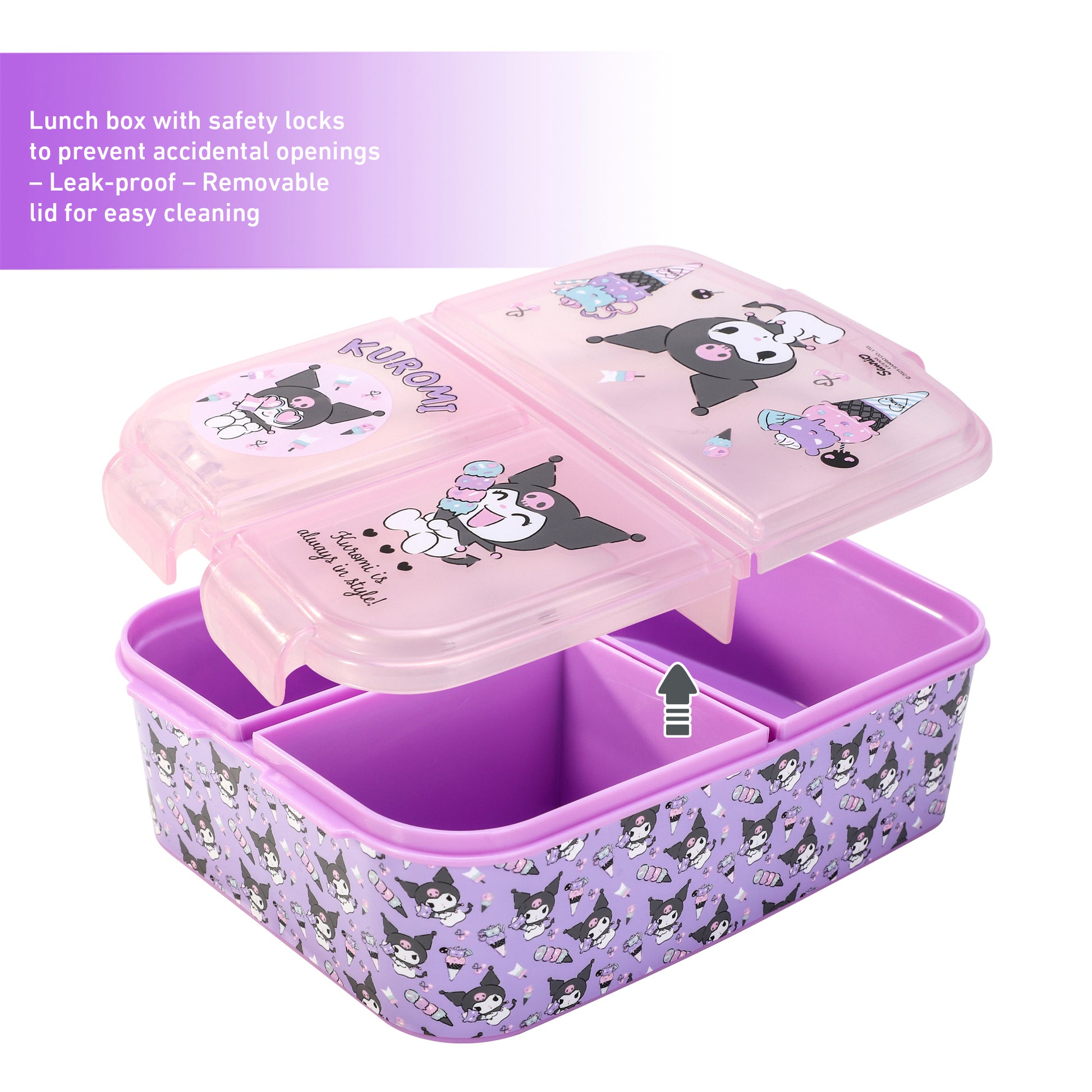 Kuromi Kids Childrens Multi Compartment Rectangular School Travel Lunch Food Box Sandwich Bento Container, BPA Free