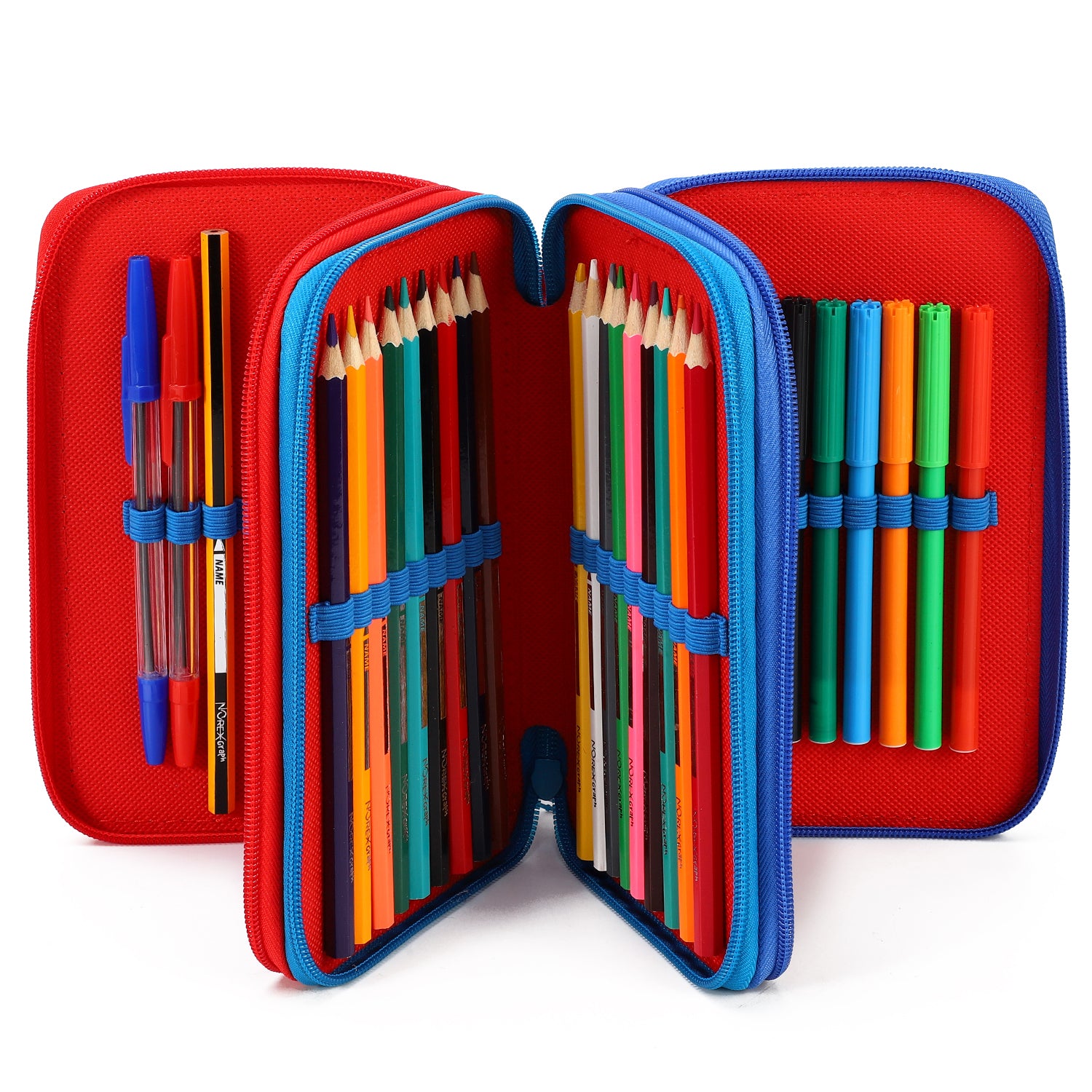 - CONTENTS: The Pencil Case comes with 18 Colouring Pens, 18 Colouring Pencils, 2 Ballpoint Pens, 1 HB Pencil, 1 Pencil Sharpener, 1 Rubber, 1 Scissors, 1 Ruler and 1 Schedule and of course the 3 Tier Case.