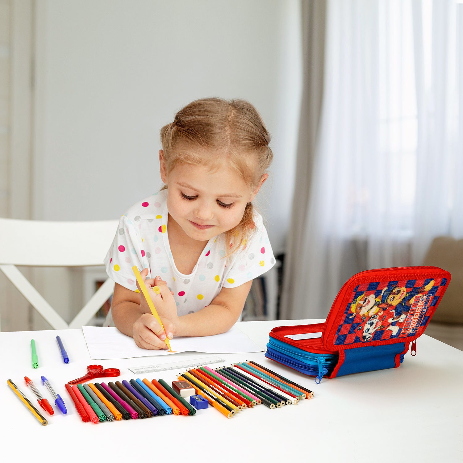 Paw Patrol 3 Tier Large Pencil Case Multi Compartment School Supplies Stationery Colouring Pens Pencils Sets