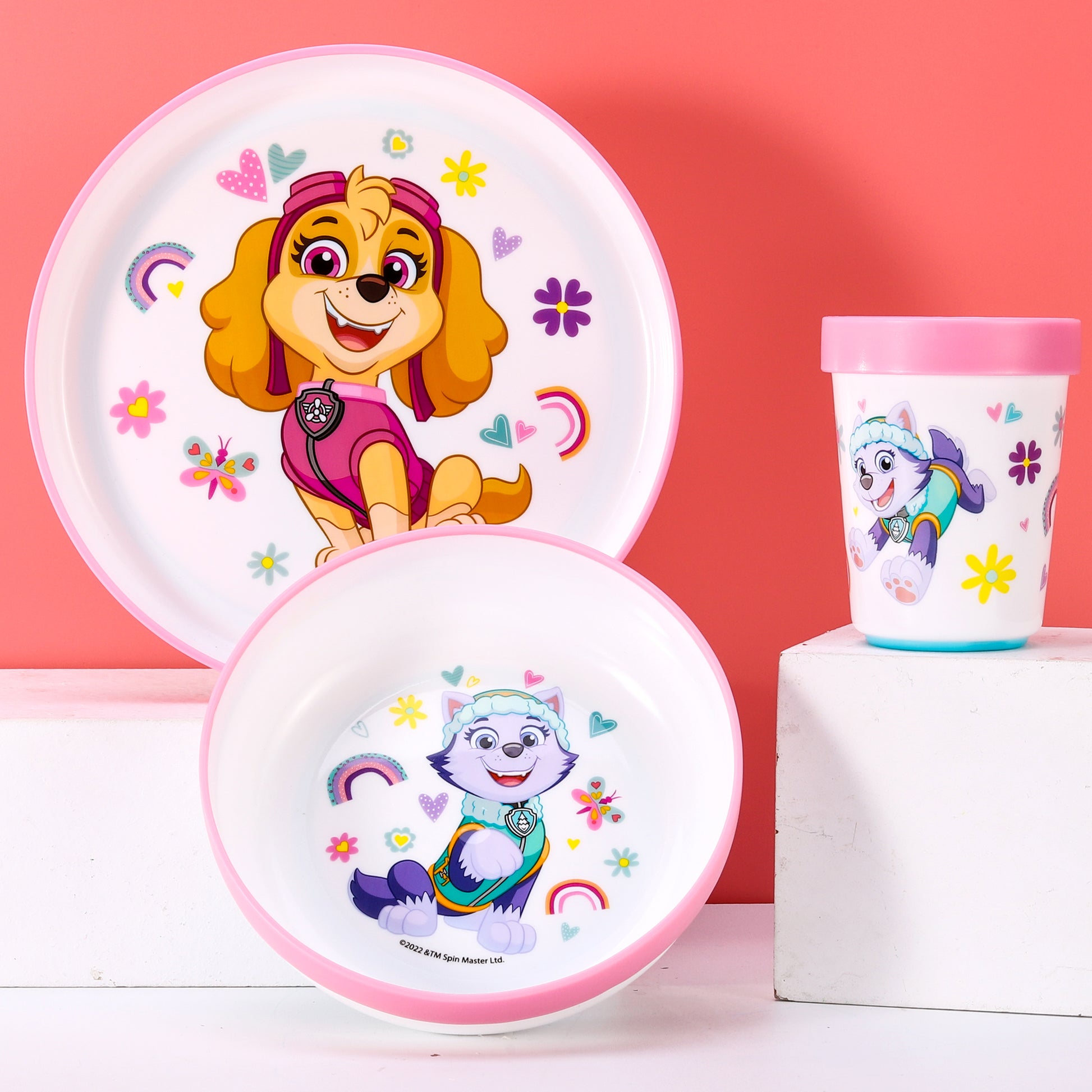 Paw Patrol 3pcs Bicolor Premium Kids Dinner Tableware Set Plate, Bowl & Tumbler, BPA Free