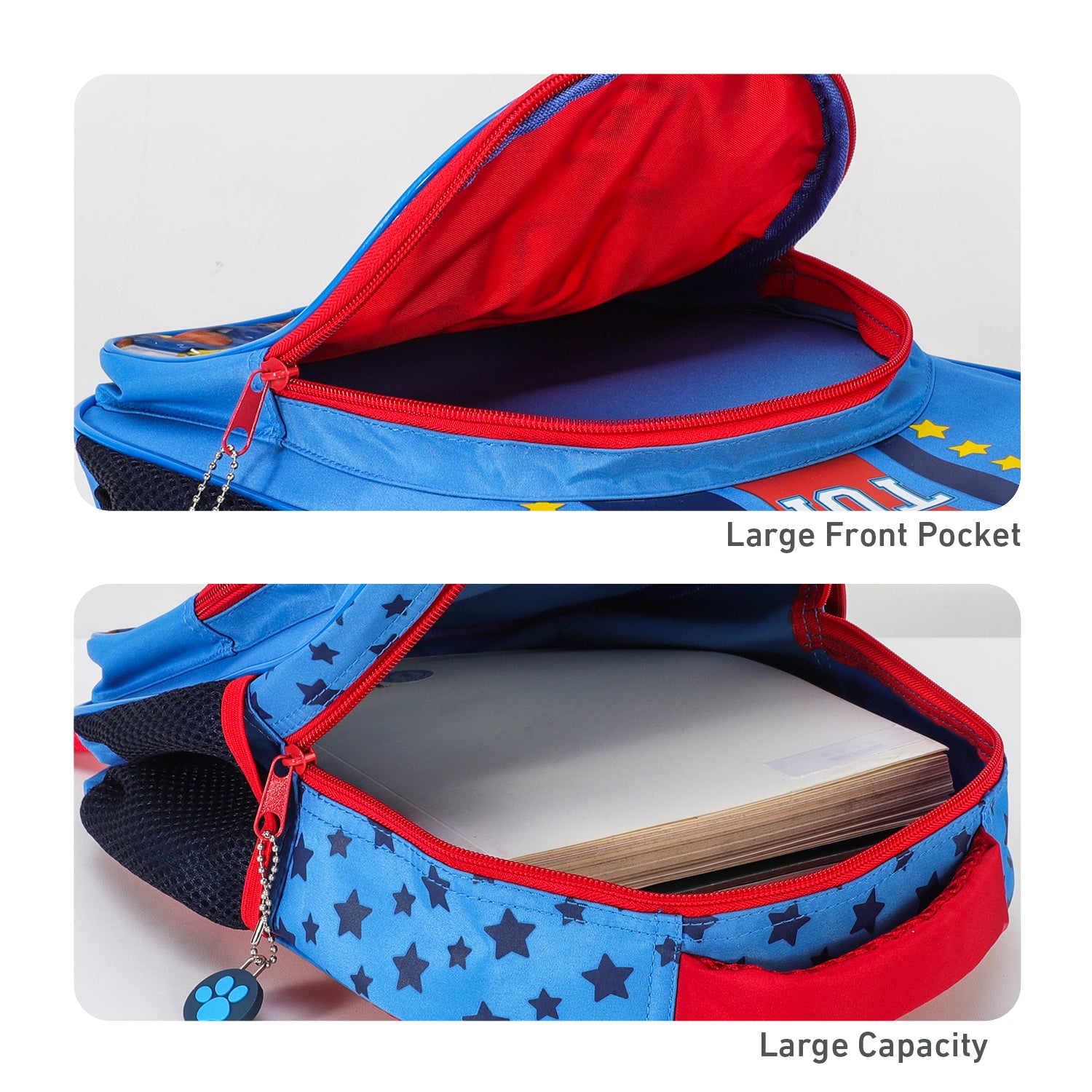 - FEATURES: This Paw Patrol Backpack has a large main zip compartment, front zippered pocket, padded adjustable straps, grab handle at the top and two side mesh pockets for the kids water bottle.